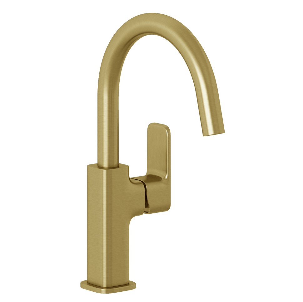 Смеситель для умывальника Renon брашированное, push-open, поворотный излив, золото, с донным клапаном, Kludi