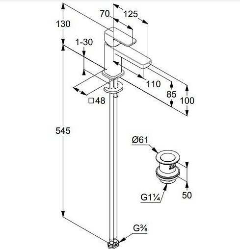 Смеситель для умывальника Renon брашированный, неповоротный излив, бронза, с донным клапаном, Kludi