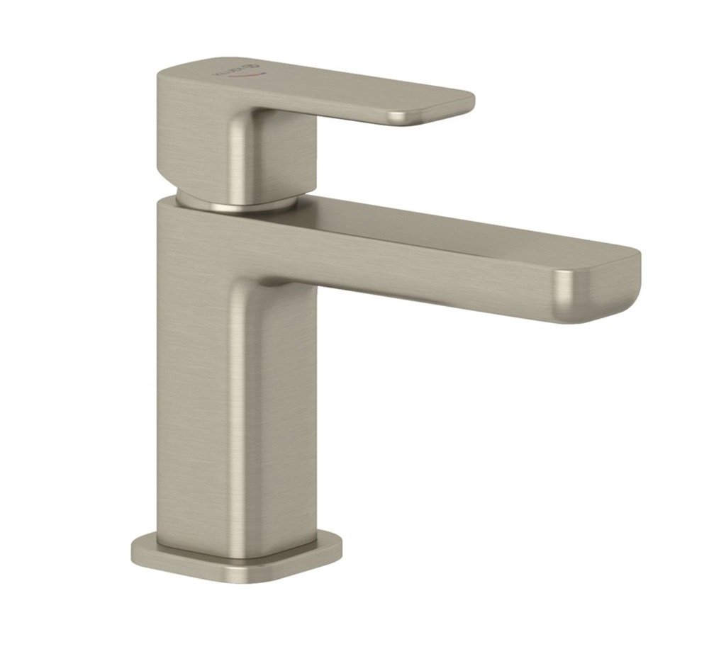 Renon, смеситель для умывальника, неповоротный излив, никель, с донным клапаном, холодный старт, брашированный, арт. 42267N575, Kludi
