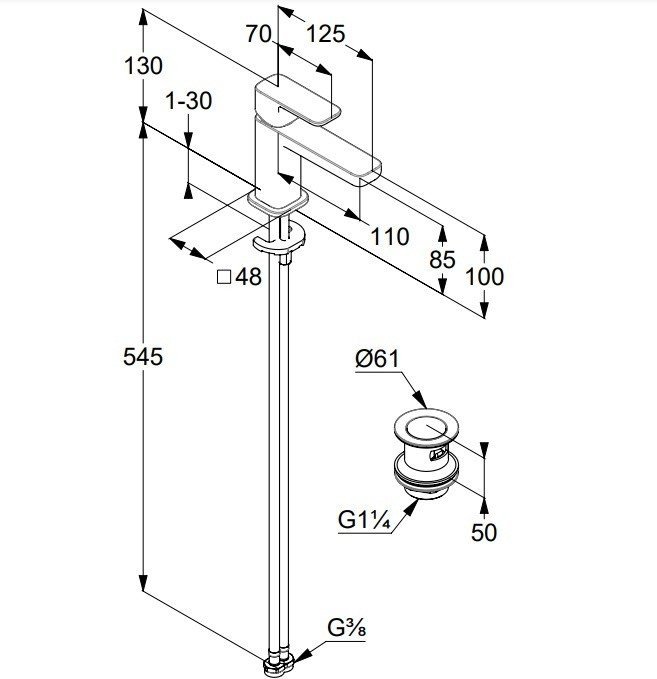 высота излива 85 мм