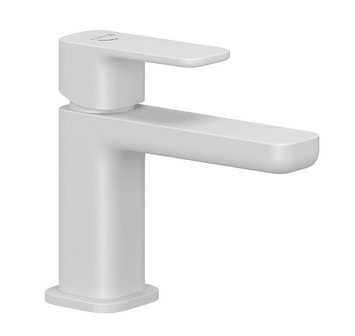 Смеситель для умывальника Renon матовый, неповоротный излив, белый цвет, с донным клапаном, холодный старт, Kludi