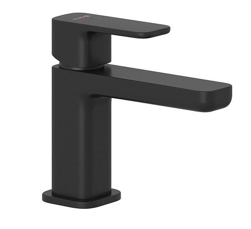 Смеситель для умывальника Renon матовый, неповоротный излив, чёрный цвет, с донным клапаном, холодный старт, Kludi