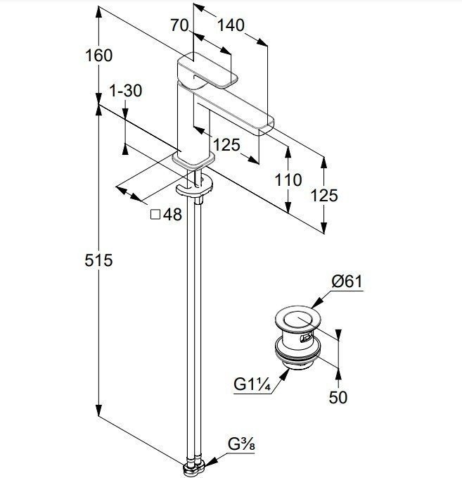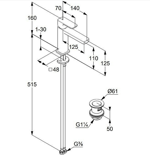 Смеситель для умывальника Renon высота излива 110 мм, брашированный, неповоротный излив, бронза, с донным клапаном, Kludi