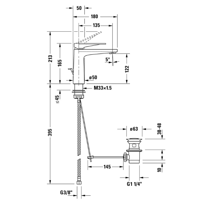 Смеситель для умывальника Tulum неповоротный излив, с донным клапаном, Duravit