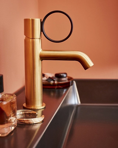 Смеситель для умывальника Vivienne Signature матовый, ручка черная, неповоротный излив, латунь, без донного клапана, Jacob Delafon