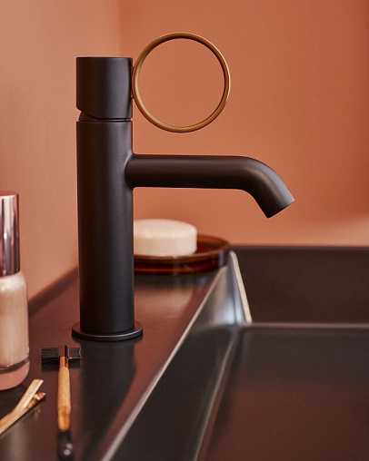 Смеситель для умывальника Vivienne Signature матовый, ручка латунь, неповоротный излив, чёрный цвет, без донного клапана, Jacob Delafon