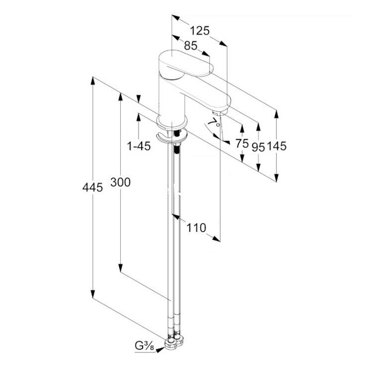 Смеситель для умывальника X1 высота до излива 7,5см, неповоротный излив, без донного клапана, Kludi
