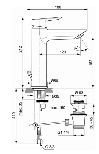 Смеситель для умывальника Tesi хром, неповоротный излив, с донным клапаном, Ideal Standard