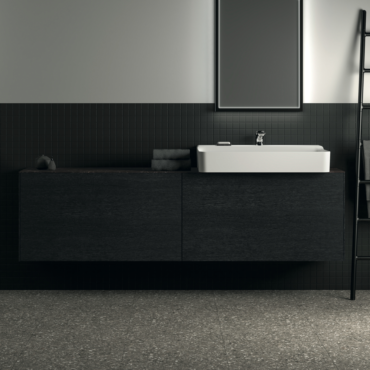 Столешница под раковину Conca 200х37 см, цвет черный мрамор, мраморная, Ideal Standard