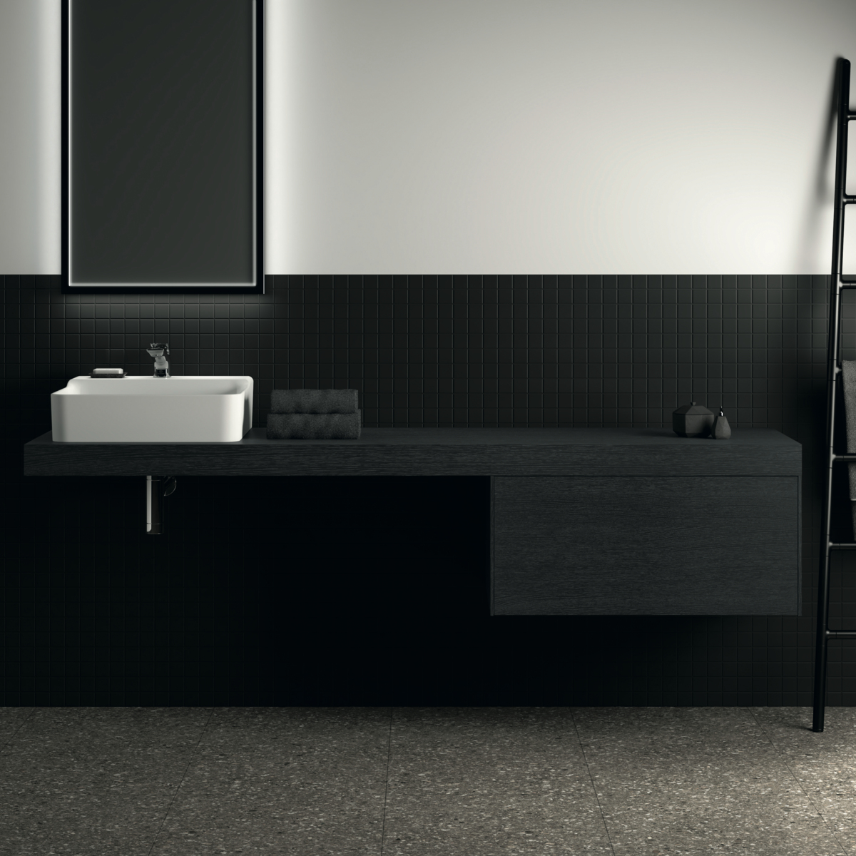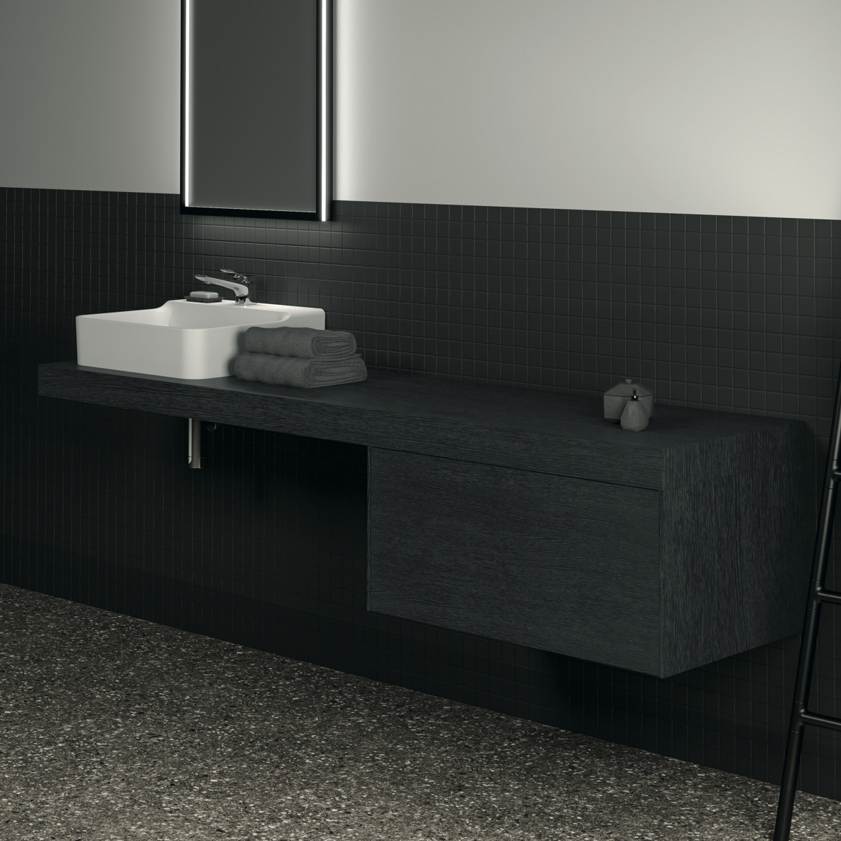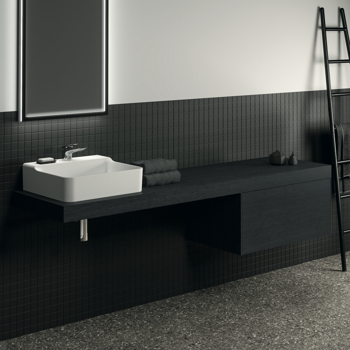 CONCA Консольная полка 200 см, проекция 50,5 см, без выреза (отверстие вырезается при помощи шаблона, входящего в комплект умывальника), с крепежом. Настенный монтаж при помощи кронштейнов (заказываются дополнительно)