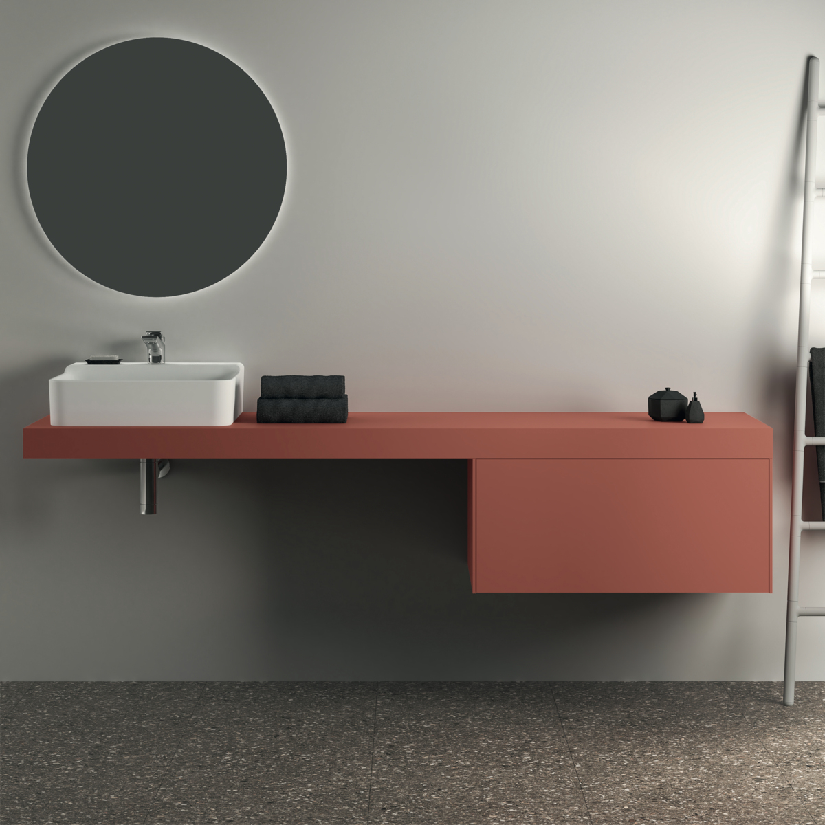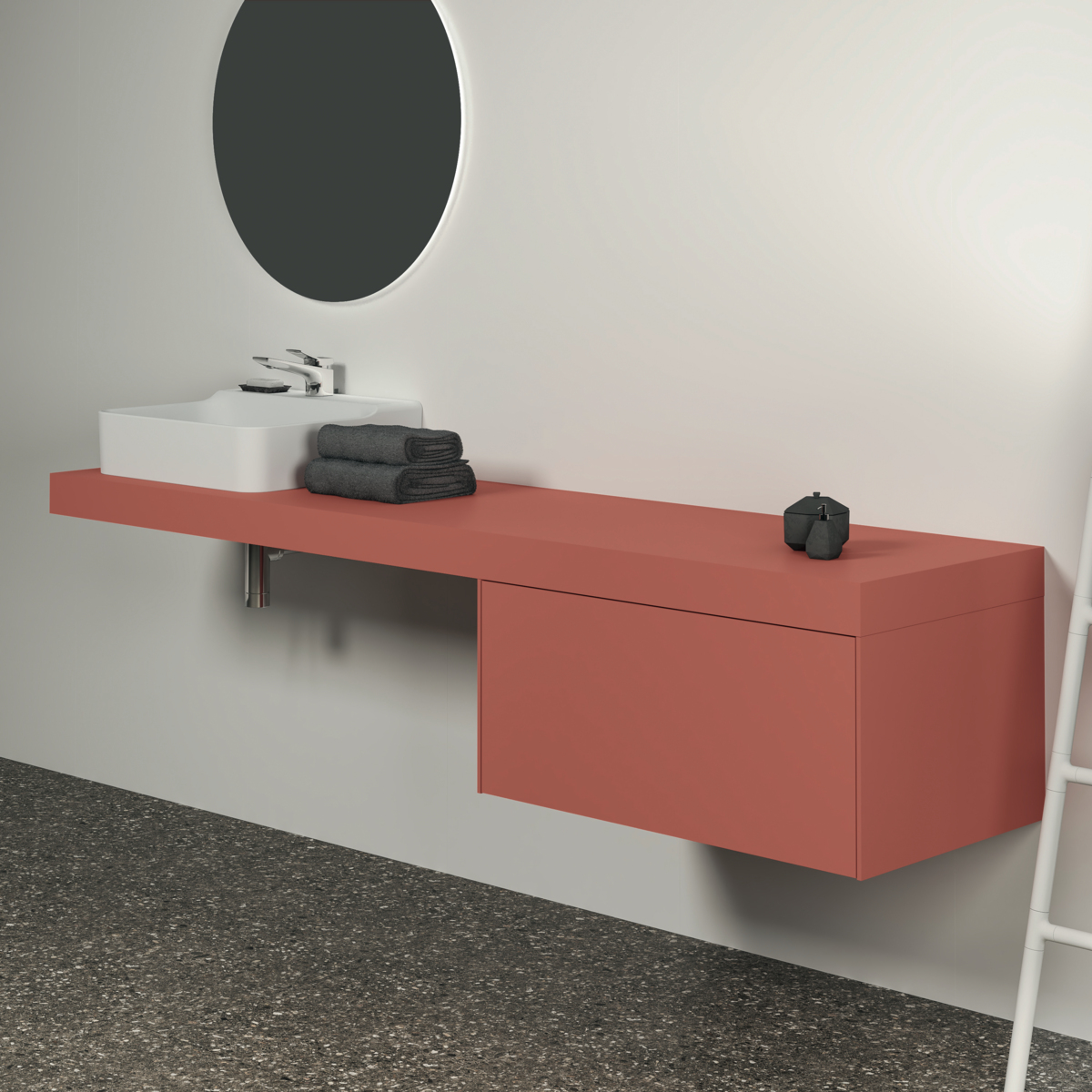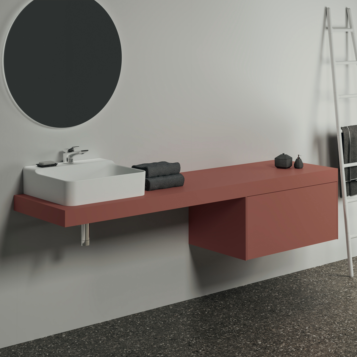 CONCA Консольная полка 200 см, проекция 50,5 см, без выреза (отверстие вырезается при помощи шаблона, входящего в комплект умывальника), с крепежом. Настенный монтаж при помощи кронштейнов (заказываются дополнительно)