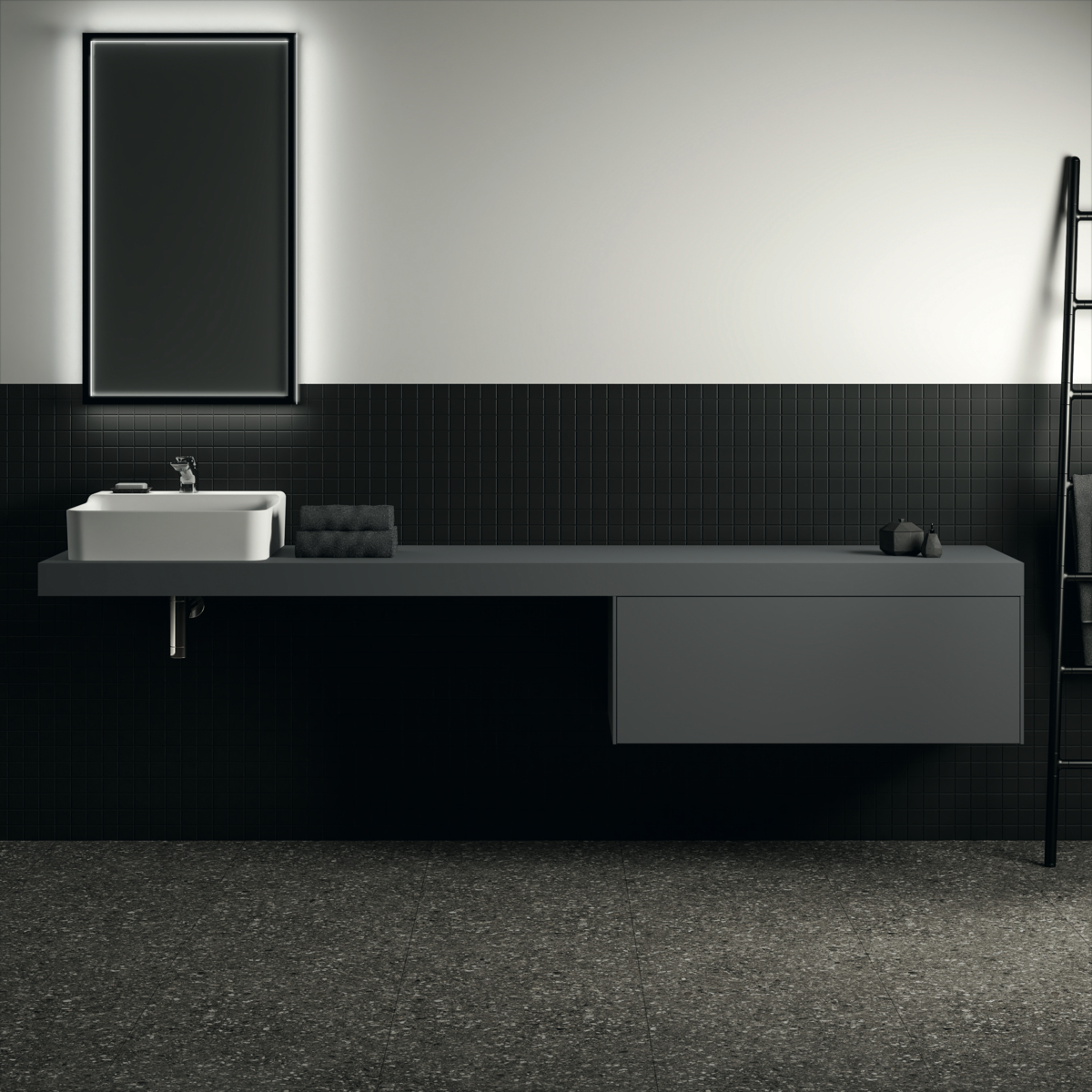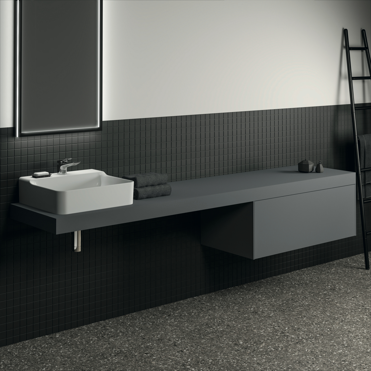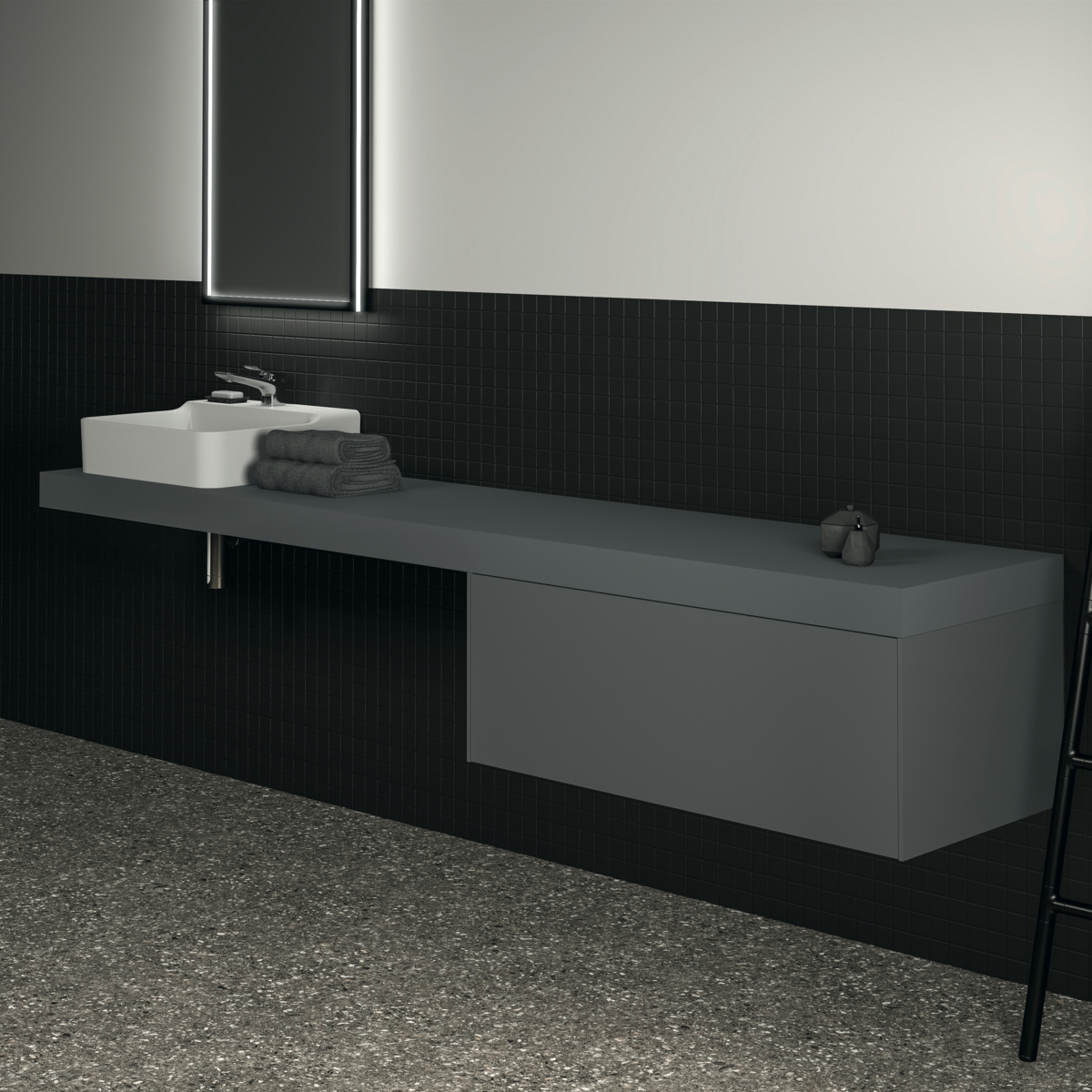 Столешница под раковину Conca 240х50,5 см, антрацит матовый, деревянная, Ideal Standard