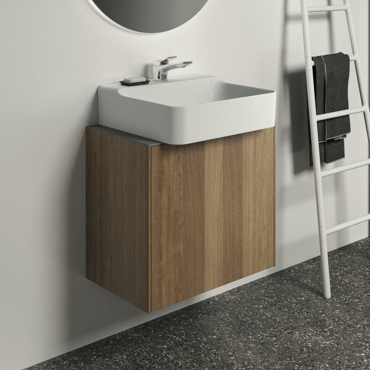 Столешница под раковину Conca 60х37 см, цвет серый камень, мраморная, Ideal Standard