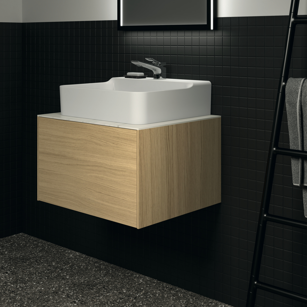 CONCA Столешница 60 см (литьевой мрамор), для монтажа с подстольем для умывальника, проекция 50,5 см. Без выреза / вырез под заказ. Заказ столешницы из литьевого мрамора с вырезом должен сопровождаться заполнением формы (Bespoke order form), т.к. вырез готовится в зависимости от выбранного умывальника