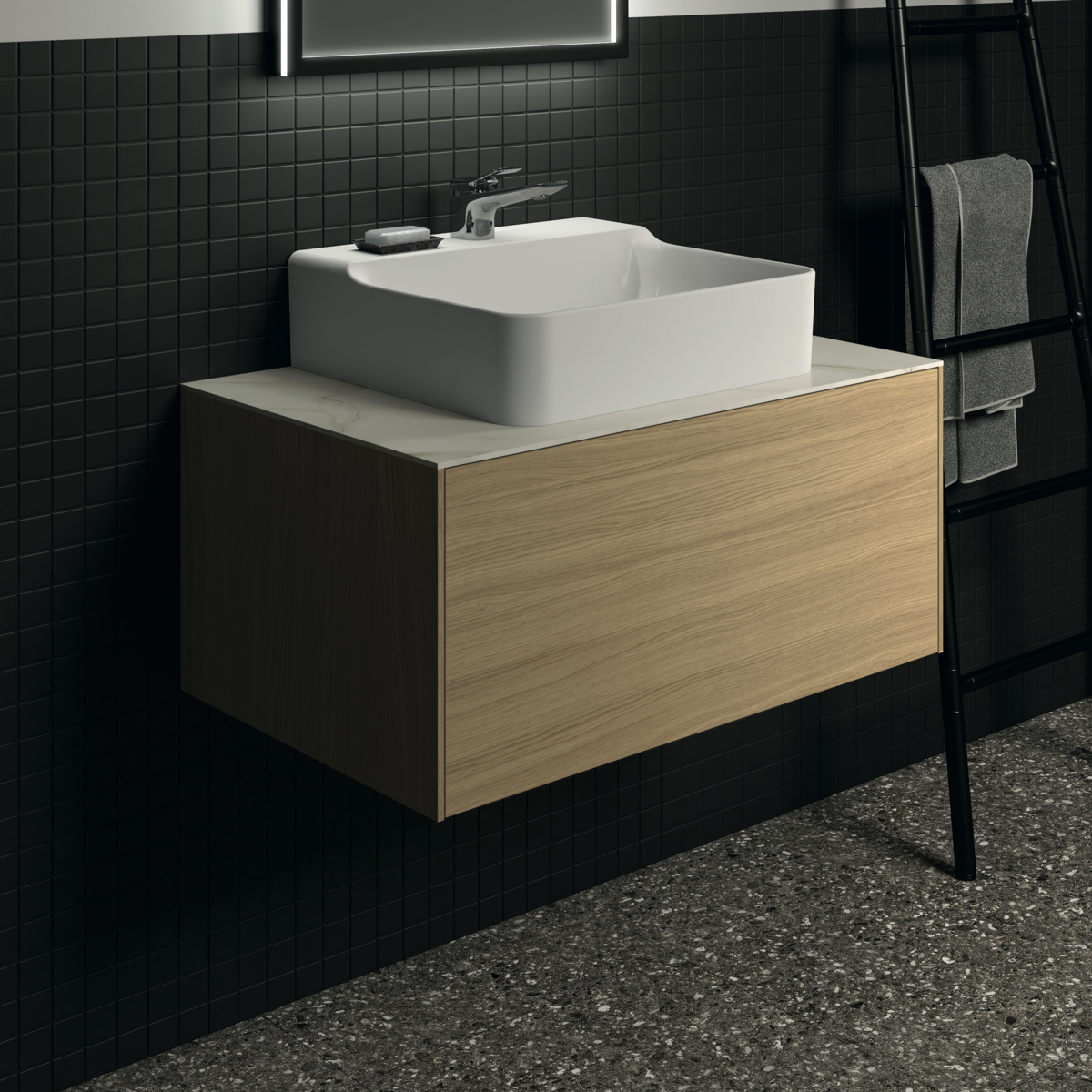 CONCA Столешница 80 см (литьевой мрамор), для монтажа с подстольем для умывальника, проекция 50,5 см. Без выреза / вырез под заказ. Заказ столешницы из литьевого мрамора с вырезом должен сопровождаться заполнением формы (Bespoke order form), т.к. вырез готовится в зависимости от выбранного умывальника