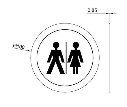 Указатель на дверь санузла для мужчин и женщин выполнен из нержавеющей стали AISI 304.