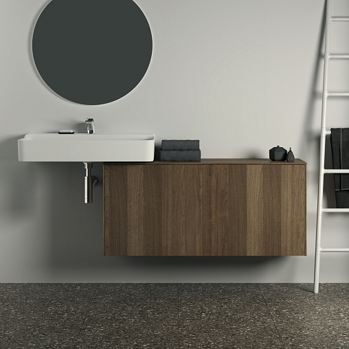 CONCA Тумба 120 см для раковины, узкая проекция 37 см, без выреза в столешнице. Комбинированная система для удобного использования (открытие "Push to open" + закрытие "Soft close"). Внутренняя отделка ящиков цвета антрацит. 1 внешний и 1 внутренний ящик. Для монтажа с раковинами Conca 40/50/60/80/100 см (с шлифованной нижней поверхностью) или Conca vessel 45/60 см или Extra 45/50/60/70/80/100 см (с шлифованной нижней поверхностью) или Extra vessel 50/60 см или Ipalyss vessel 40/55/60/65/80 см или Linda-X 50/60/75 см (с шлифованной нижней поверхностью) или Linda-X vessel 45/55 см