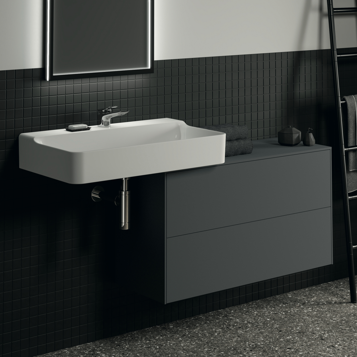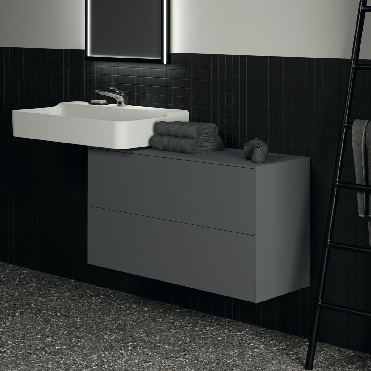 Тумба для ванной Conca 2 ящика, антрацит матовый, подвесной монтаж 100х37,3х55 см, Ideal Standard