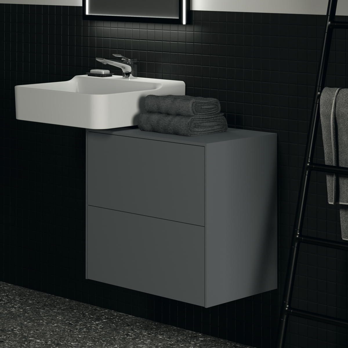 Тумба для ванной Conca 2 ящика, антрацит матовый, подвесной монтаж 60х37,3х55 см, Ideal Standard