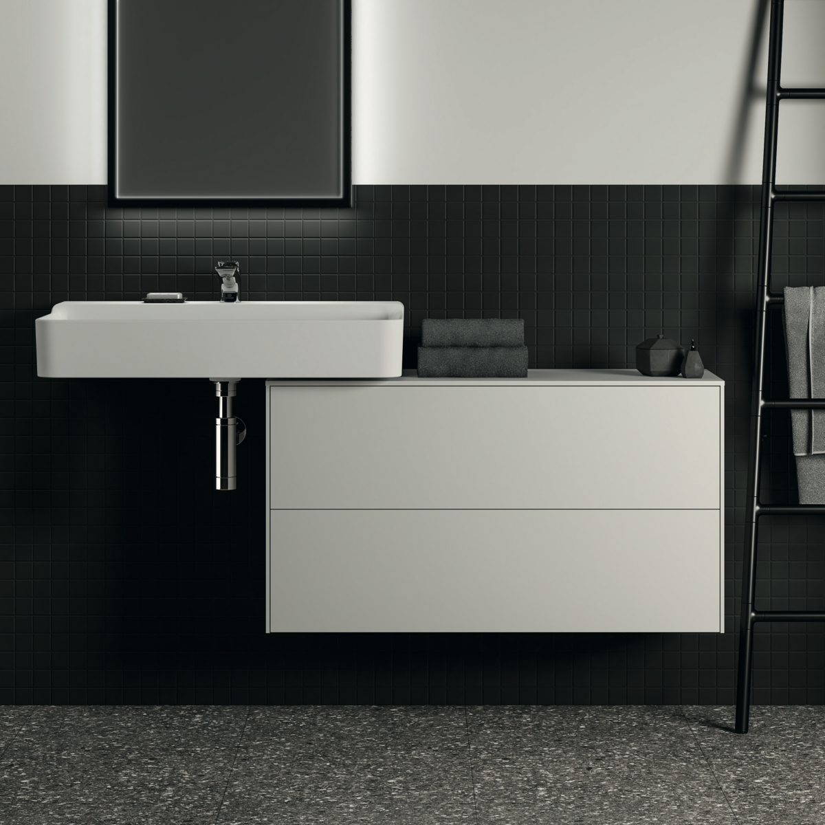 CONCA Тумба 100 см для раковины, узкая проекция 37 см, без выреза в столешнице. Комбинированная система для удобного использования (открытие "Push to open" + закрытие "Soft close"). Внутренняя отделка ящиков цвета антрацит. 2 внешних ящика. Для монтажа с раковинами Conca 40/50/60/80 см (с шлифованной нижней поверхностью) или Conca vessel 45/60 см или Extra 45/50/60/70/80 см (с шлифованной нижней поверхностью) или Extra vessel 50/60 см или Ipalyss vessel 40/55/60/65/80 см или Linda-X 50/60/75 см (с шлифованной нижней поверхностью) или Linda-X vessel 45/55 см