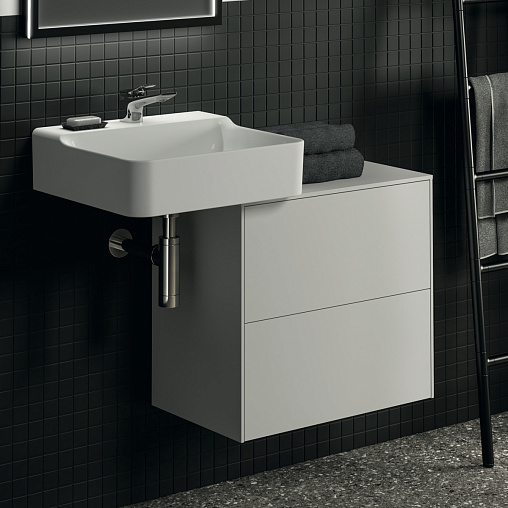 CONCA Тумба 60 см для раковины, узкая проекция 37 см, без выреза в столешнице. Комбинированная система для удобного использования (открытие "Push to open" + закрытие "Soft close"). Внутренняя отделка ящиков цвета антрацит. 2 внешних ящика. Для монтажа с раковинами Conca 40/50 см (с шлифованной нижней поверхностью) или Conca vessel 45 см или Extra 45/50 см (с шлифованной нижней поверхностью) или Extra vessel 50 см или Ipalyss vessel 40/55/60 см или Linda-X 50/60 см (с шлифованной нижней поверхностью) или Linda-X vessel 45/55 см