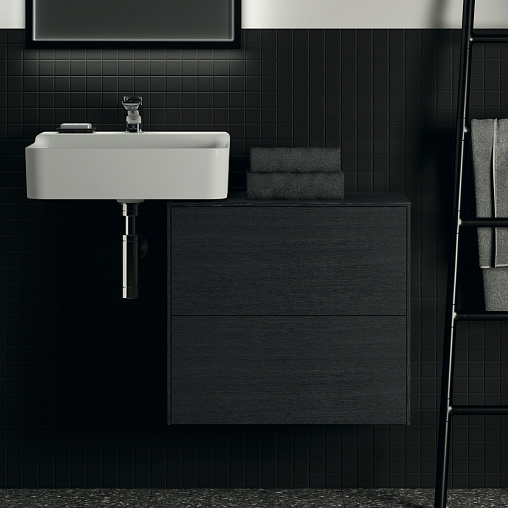 CONCA Тумба 60 см для раковины, узкая проекция 37 см, без выреза в столешнице. Комбинированная система для удобного использования (открытие "Push to open" + закрытие "Soft close"). Внутренняя отделка ящиков цвета антрацит. 2 внешних ящика. Для монтажа с раковинами Conca 40/50 см (с шлифованной нижней поверхностью) или Conca vessel 45 см или Extra 45/50 см (с шлифованной нижней поверхностью) или Extra vessel 50 см или Ipalyss vessel 40/55/60 см или Linda-X 50/60 см (с шлифованной нижней поверхностью) или Linda-X vessel 45/55 см