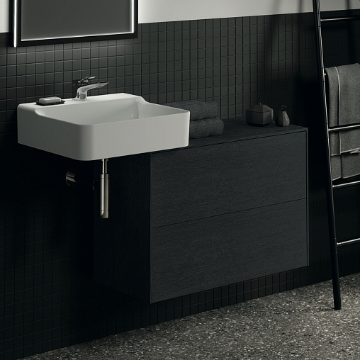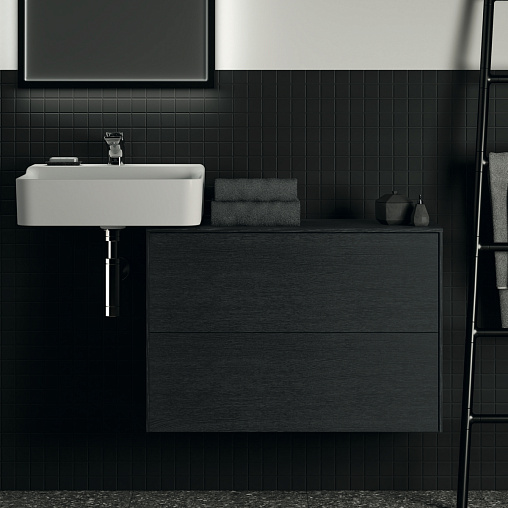 CONCA Тумба 80 см для раковины, узкая проекция 37 см, без выреза в столешнице. Комбинированная система для удобного использования (открытие "Push to open" + закрытие "Soft close"). Внутренняя отделка ящиков цвета антрацит. 2 внешних ящика. Внутренняя отделка ящиков цвета антрацит. 2 внешних ящика. Для монтажа с раковинами Conca 40/50/60 см (с шлифованной нижней поверхностью) или Conca vessel 45/60 см или Extra 45/50/60/70 см (с шлифованной нижней поверхностью) или Extra vessel 50/60 см или Ipalyss vessel 40/55/60/65/80 см или Linda-X 50/60/75 см (с шлифованной нижней поверхностью) или Linda-X vessel 45/55 см