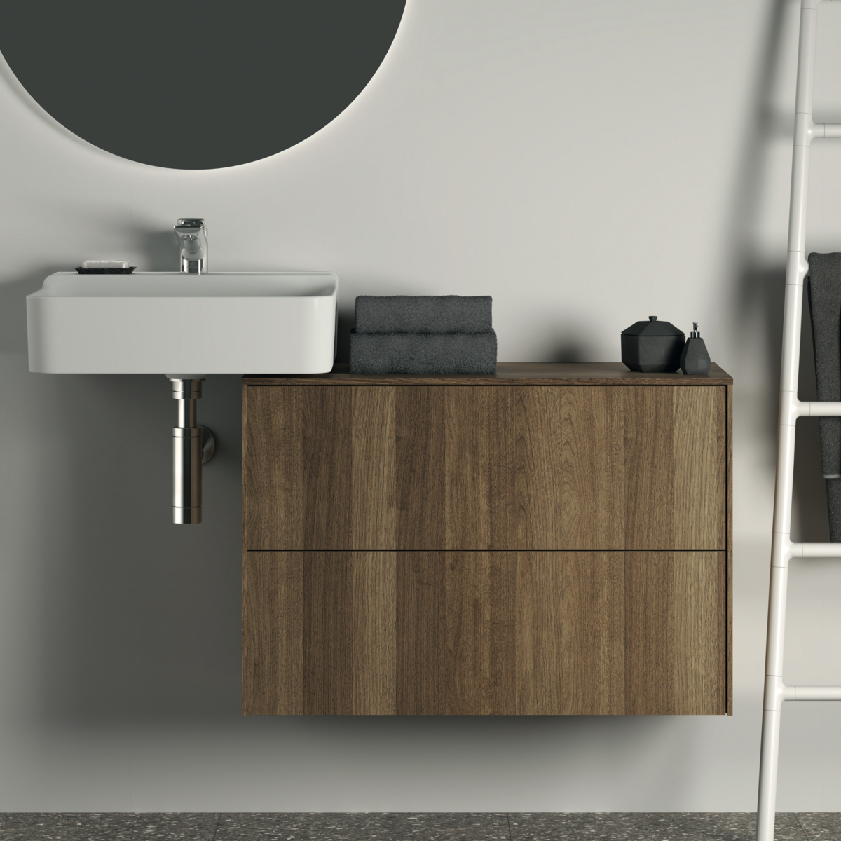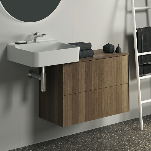 CONCA Тумба 80 см для раковины, узкая проекция 37 см, без выреза в столешнице. Комбинированная система для удобного использования (открытие "Push to open" + закрытие "Soft close"). Внутренняя отделка ящиков цвета антрацит. 2 внешних ящика. Внутренняя отделка ящиков цвета антрацит. 2 внешних ящика. Для монтажа с раковинами Conca 40/50/60 см (с шлифованной нижней поверхностью) или Conca vessel 45/60 см или Extra 45/50/60/70 см (с шлифованной нижней поверхностью) или Extra vessel 50/60 см или Ipalyss vessel 40/55/60/65/80 см или Linda-X 50/60/75 см (с шлифованной нижней поверхностью) или Linda-X vessel 45/55 см