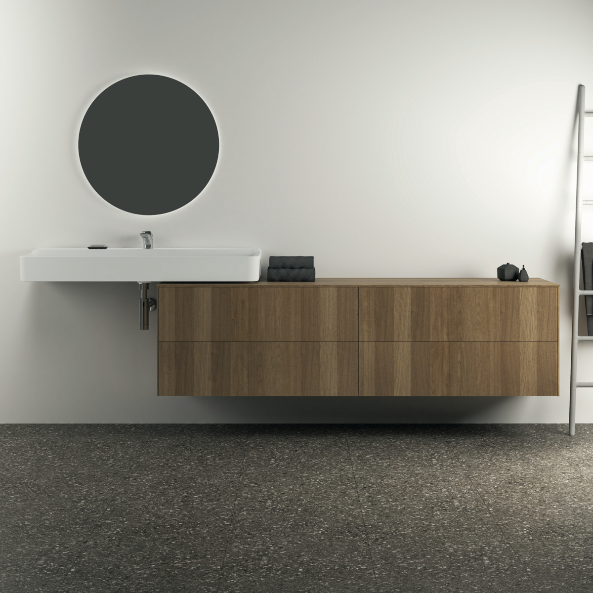 CONCA Тумба 200 см для раковины, без выреза в столешнице. Комбинированная система для удобного использования (открытие "Push to open" + закрытие "Soft close"). Внутренняя отделка ящиков цвета антрацит. 4 ящика. Для монтажа с раковинами Conca 40/50/60/80/100 см (с шлифованной нижней поверхностью) или Conca vessel 45/60 см или Extra 45/50/60/70/80/100 см (с шлифованной нижней поверхностью) или Extra vessel 50/60 см или Ipalyss vessel 40/55/60/65/80 см или Linda-X 50/60/75 см (с шлифованной нижней поверхностью) или Linda-X vessel 45/55 см