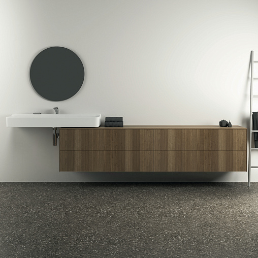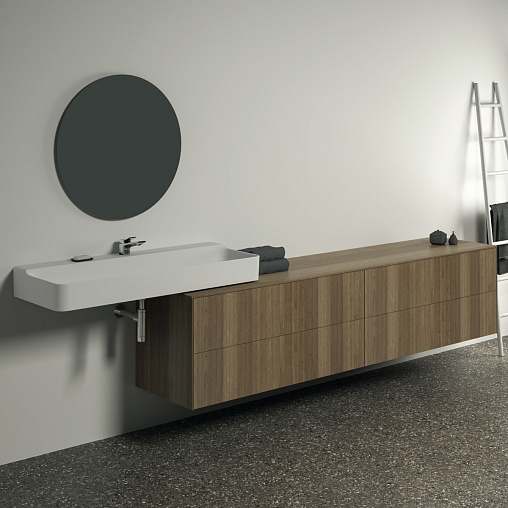 CONCA Тумба 240 см для раковины, без выреза в столешнице. Комбинированная система для удобного использования (открытие "Push to open" + закрытие "Soft close"). Внутренняя отделка ящиков цвета антрацит. 4 ящика. Для монтажа с раковинами Conca 40/50/60/80/100/120 см (с шлифованной нижней поверхностью) или Conca vessel 45/60 см или Extra 45/50/60/70/80/100 см (с шлифованной нижней поверхностью) или Extra vessel 50/60 см или Ipalyss vessel 40/55/60/65/80 см или Linda-X 50/60/75 см (с шлифованной нижней поверхностью) или Linda-X vessel 45/55 см