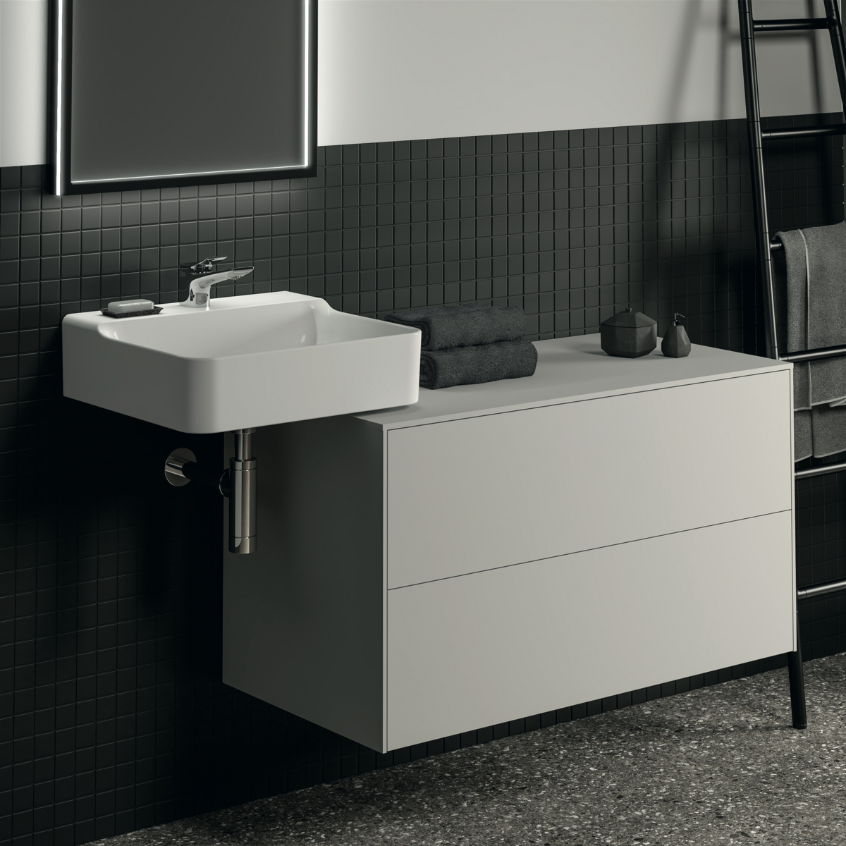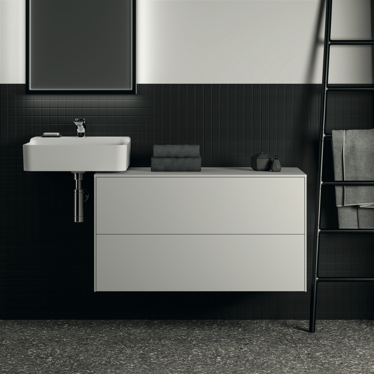 CONCA Тумба 100 см для раковины, без выреза в столешнице. Комбинированная система для удобного использования (открытие "Push to open" + закрытие "Soft close"). Внутренняя отделка ящиков цвета антрацит. 2 ящика. Для монтажа с раковинами Conca 40/50/60/80 см (с шлифованной нижней поверхностью) или Conca vessel 45/60 см или Extra 45/50/60/70/80 см (с шлифованной нижней поверхностью) или Extra vessel 50/60 см или Ipalyss vessel 40/55/60/65/80 см или Linda-X 50/60/75 см (с шлифованной нижней поверхностью) или Linda-X vessel 45/55 см