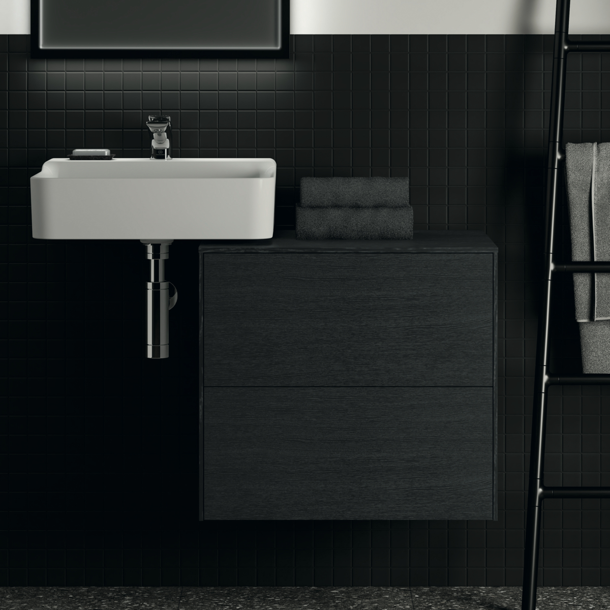 CONCA Тумба 60 см для раковины, без выреза в столешнице. Комбинированная система для удобного использования (открытие "Push to open" + закрытие "Soft close"). Внутренняя отделка ящиков цвета антрацит. 2 ящика. Для монтажа с раковинами Conca 40/50 см (с шлифованной нижней поверхностью) или Conca vessel 45 см или Extra 45/50 см (с шлифованной нижней поверхностью) или Extra vessel 50 см или Ipalyss vessel 40/55/60 см или Linda-X 50/60 см (с шлифованной нижней поверхностью) или Linda-X vessel 45/55 см