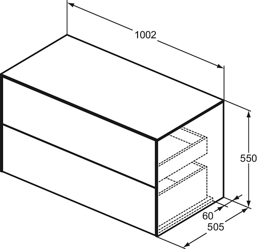 CONCA Тумба 100 см для раковины, без выреза в столешнице. Комбинированная система для удобного использования (открытие "Push to open" + закрытие "Soft close"). Внутренняя отделка ящиков цвета антрацит. 2 ящика. Для монтажа с раковинами Conca 40/50/60/80 см (с шлифованной нижней поверхностью) или Conca vessel 45/60 см или Extra 45/50/60/70/80 см (с шлифованной нижней поверхностью) или Extra vessel 50/60 см или Ipalyss vessel 40/55/60/65/80 см или Linda-X 50/60/75 см (с шлифованной нижней поверхностью) или Linda-X vessel 45/55 см