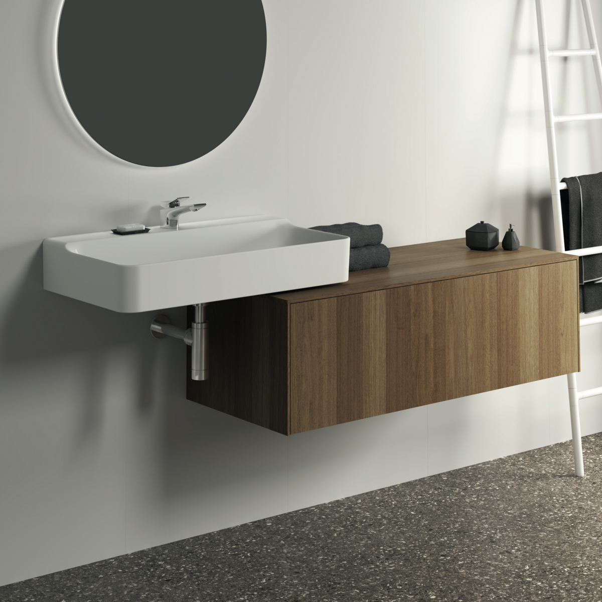 CONCA Тумба 120 см для раковины, без выреза в столешнице. Комбинированная система для удобного использования (открытие "Push to open" + закрытие "Soft close"). Внутренняя отделка ящиков цвета антрацит. 1 ящик. Для монтажа с раковинами Conca 40/50/60/80/100 см (с шлифованной нижней поверхностью) или Conca vessel 45/60 см или Extra 45/50/60/70/80/100 см (с шлифованной нижней поверхностью) или Extra vessel 50/60 см или Ipalyss vessel 40/55/60/65/80 см или Linda-X 50/60/75 см (с шлифованной нижней поверхностью) или Linda-X vessel 45/55 см