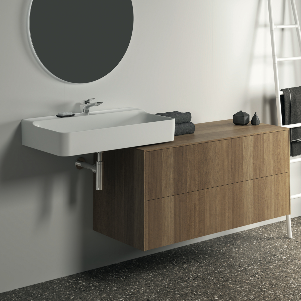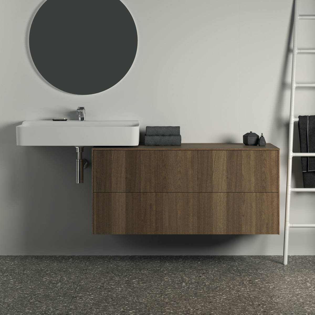 CONCA Тумба 120 см для раковины, без выреза в столешнице. Комбинированная система для удобного использования (открытие "Push to open" + закрытие "Soft close"). Внутренняя отделка ящиков цвета антрацит. 2 ящика. Для монтажа с раковинами Conca 40/50/60/80/100 см (с шлифованной нижней поверхностью) или Conca vessel 45/60 см или Extra 45/50/60/70/80/100 см (с шлифованной нижней поверхностью) или Extra vessel 50/60 см или Ipalyss vessel 40/55/60/65/80 см или Linda-X 50/60/75 см (с шлифованной нижней поверхностью) или Linda-X vessel 45/55 см