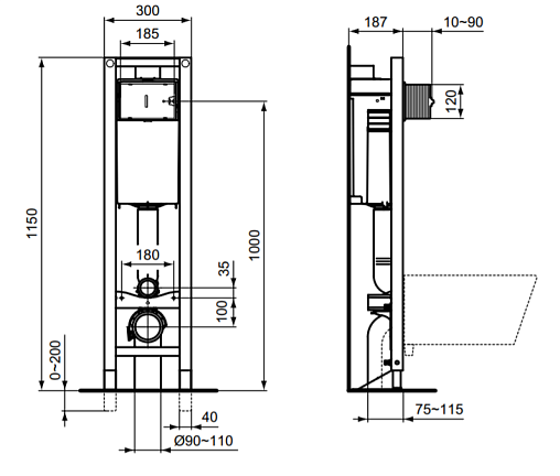 Prosys Eco 30х18,7х115см, система инсталляции для унитаза, без кнопки, регулировка высоты ножек, арт. E233367, Ideal Standard