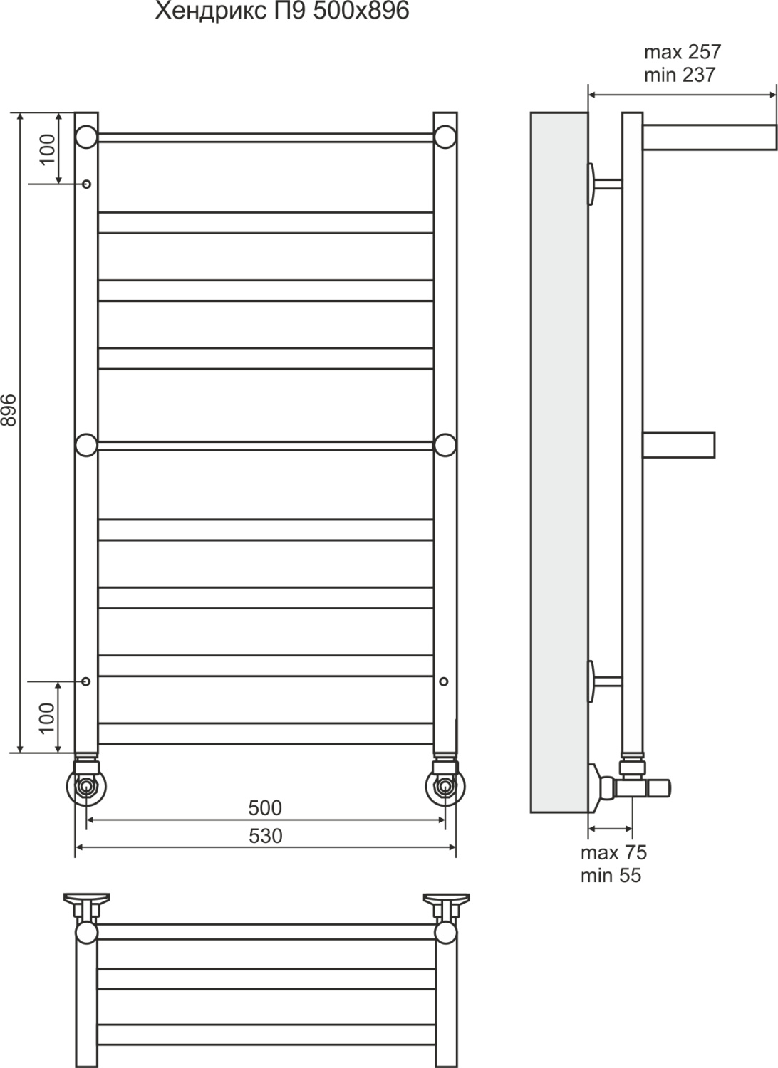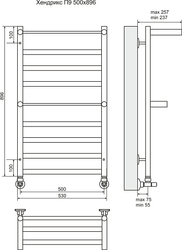 Водяной полотенцесушитель Хендрикс+ 53,2х89,6 см, с полкой, стальной, Terminus