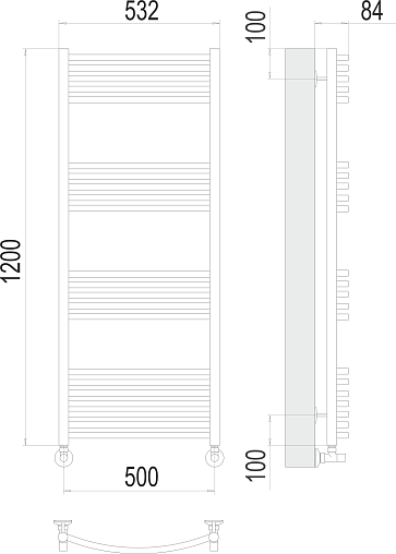 Водяной полотенцесушитель Классик 50х120 см, нижнее подключение, Terminus