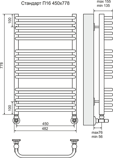 Стандарт П16 48,2х77,8см, водяной полотенцесушитель, арт. 4620768886195, Terminus