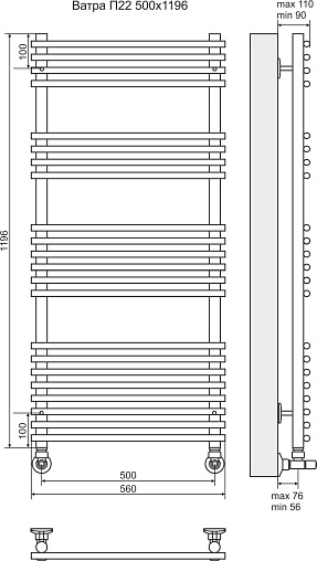 Ватра П22 56х119,6см, водяной полотенцесушитель, стальной, арт. 4620768886621, Terminus