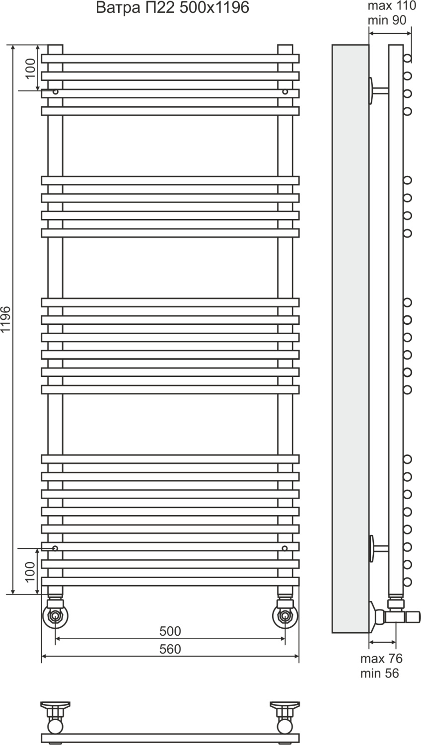 Ватра П22 56х119,6см, водяной полотенцесушитель, стальной, арт. 4620768886621, Terminus