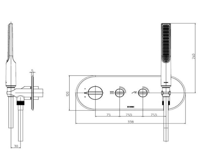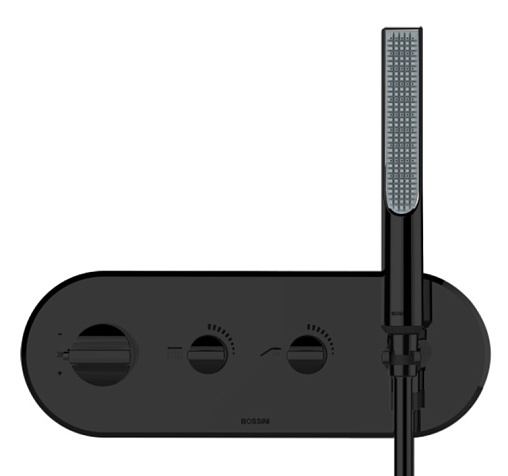Apice, лицевая часть встраиваемого смесителя, 2 функции, чёрный цвет, матовый, с лейкой, термостат, арт. Z00523.073, Bossini