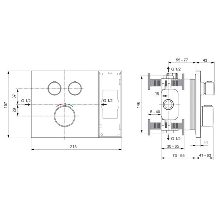 Ceratherm Navigo Solos, лицевая часть встраиваемого смесителя, 2 функции, термостат, арт. A7894AA, Ideal Standard