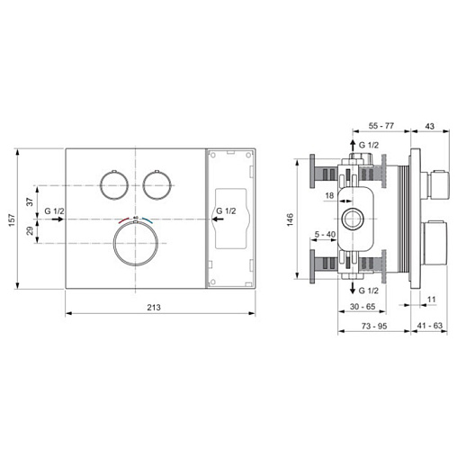 Лицевая часть встраиваемого смесителя Ceratherm Navigo Solos термостат, 2 функции, Ideal Standard