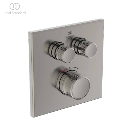 Ceratherm Navigo, лицевая часть встраиваемого смесителя, 2 функции, стальной цвет, термостат, square (silver storm), арт. A7302GN, Ideal Standard