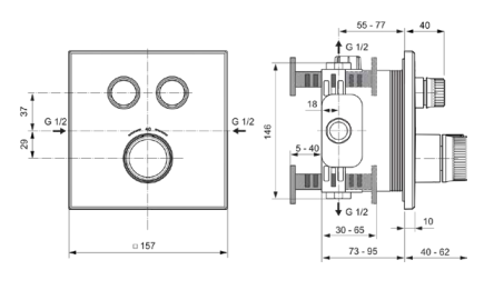 CERATHERM NAVIGO - Встраиваемый душевой смеситель, комплект 2, 157x62x157 мм, требуется комплект 1 (A1000), 18 л/мин (3 бар)
