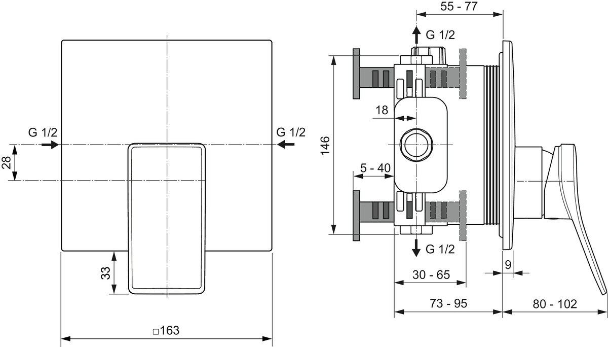 Лицевая часть встраиваемого смесителя