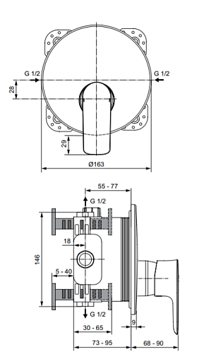 Лицевая часть встраиваемого смесителя Connect Air картридж 47 мм, 2 функции, Ideal Standard