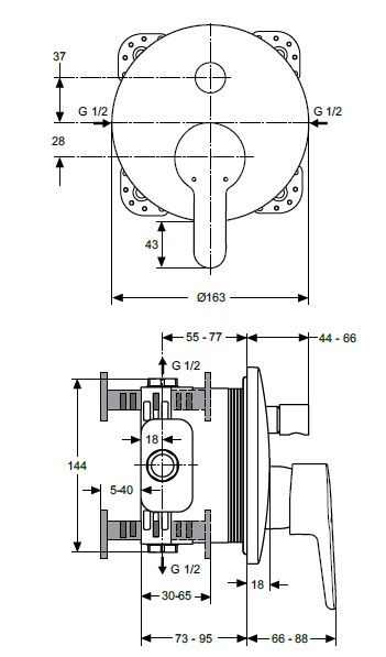 Connect Blue, лицевая часть встраиваемого смесителя, 2 функции, арт. A5802AA, Ideal Standard