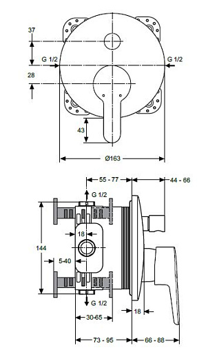 Встраиваемый смеситель для ванны/душа